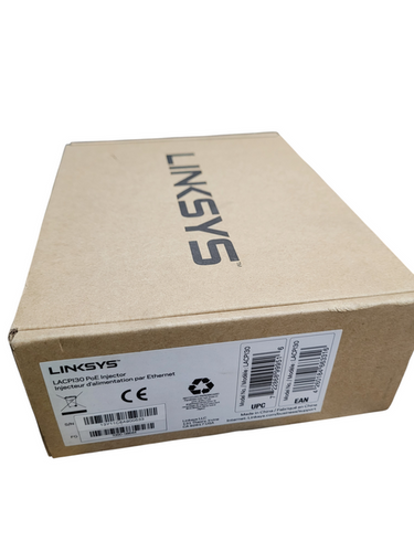 The Linksys LACPI30 is a Gigabit Power over Ethernet Plus (PoE+) injector that provides both power and data over a single Ethernet cable to compatible PoE-enabled devices such as access points, IP cameras, and VoIP phones. It supports up to 30 watts of power output, ensuring efficient and reliable connectivity without the need for additional power adapters.