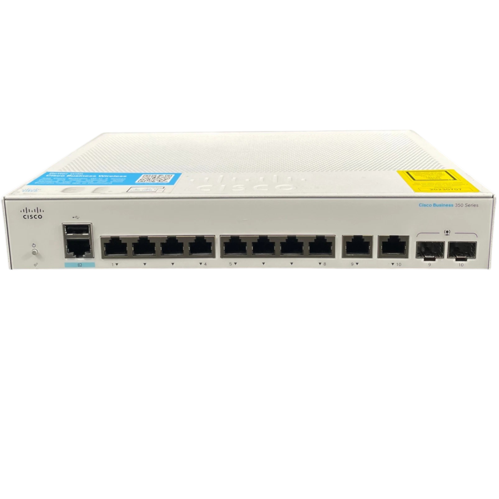 The Cisco CBS350-8T-E-2G is a versatile Layer 3 managed switch designed for small and medium business networks, branch offices, and enterprise edge deployments that demand reliable performance, advanced security, and flexible connectivity. This smart managed switch from the Cisco Business 350 Series offers enhanced network control with Layer 2/3 features ideal for growing infrastructures.
