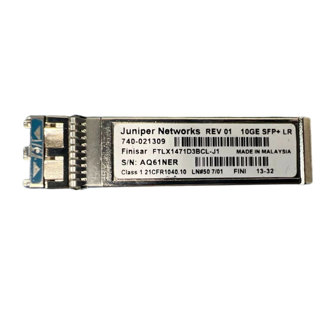 The Juniper Networks 740-021309 is a 10GBASE-LR SFP+ transceiver designed for high-speed Ethernet connectivity over single-mode fiber. Operating at the 1310nm wavelength, it supports transmission distances of up to 10 km, making it ideal for enterprise backbones, data centers, and service provider networks.