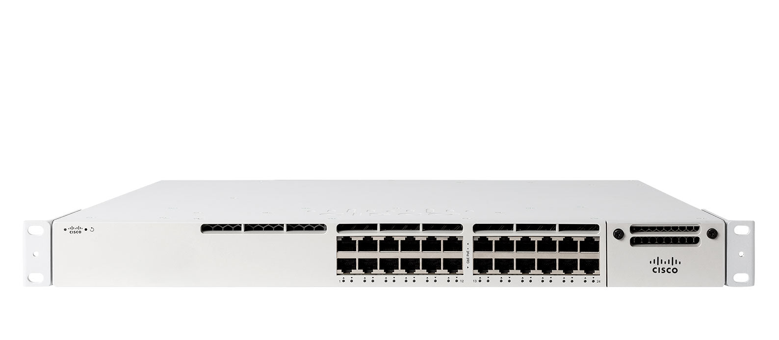 With 24 Gigabit Ethernet ports, the MS390-24 delivers reliable connectivity for users, access points, IP phones, and IoT devices while providing secure segmentation and intelligent traffic control. Centralized management through the Meraki Dashboard allows zero-touch provisioning, real-time monitoring, automated updates, and detailed analytics for simplified network operations.