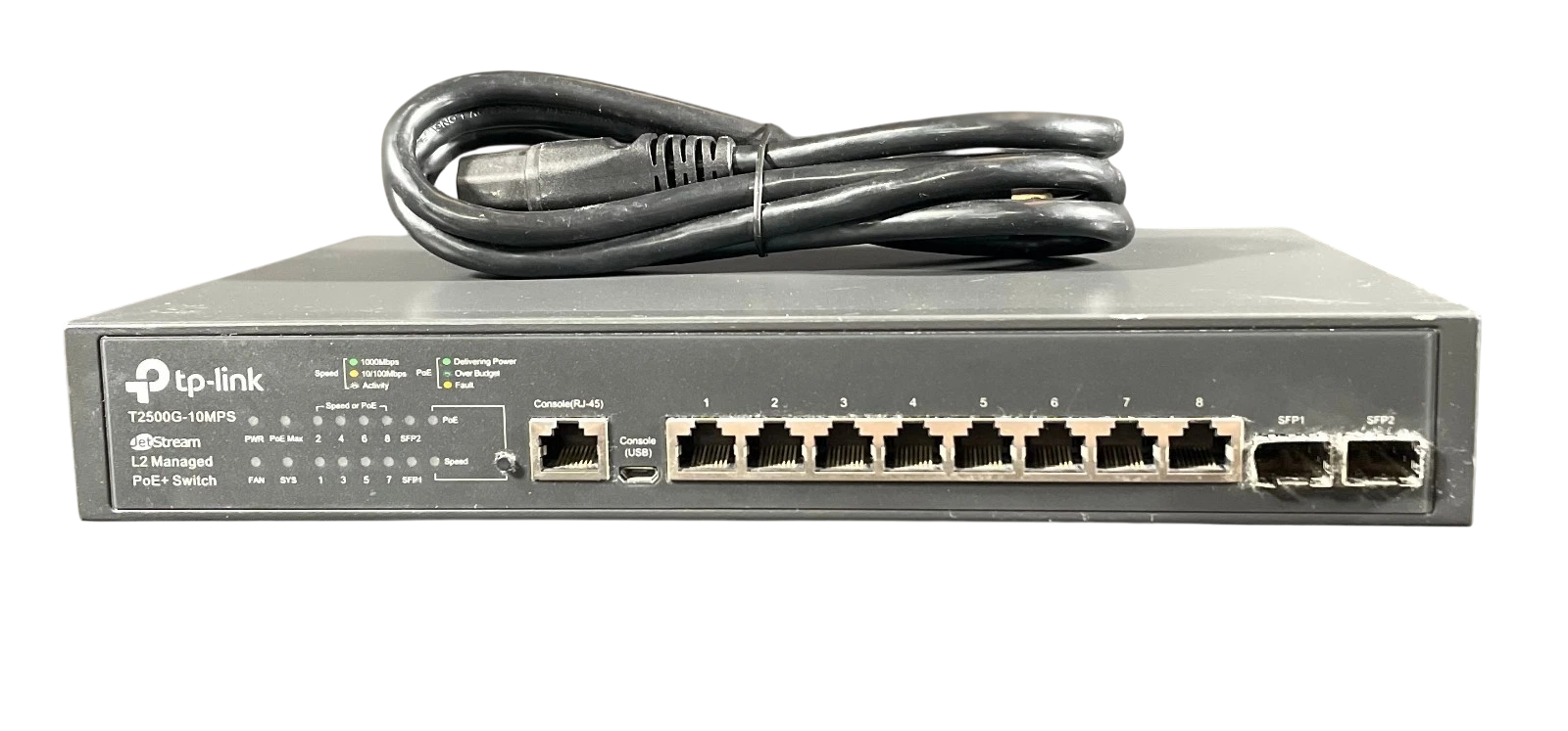 The TP-Link T2500G-10MPS is a reliable and cost-effective 10-Port Gigabit Smart PoE+ Switch, ideal for small businesses, branch networks, and PoE-powered deployments. With 8× PoE+ ports, advanced Layer 2 management, VLAN support, QoS, and robust security features, this switch delivers stable network performance with simplified management.